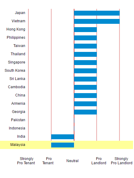A lot of people are not aware of the fact that Malaysia does not have any specific law on tenancy so the landlords do not have a lot of protection or a proper legal backup in case the legal dispute between tenants and landlords happen. To prove this claim, data coming from The Global Property Guide says that the laws in Malaysia in comparison with the other Asian countires are pro-tenant, based on the following factors: